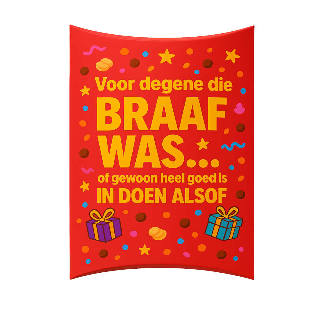 Een vrolijke verpakking met humor speciaal voor de jeugd.